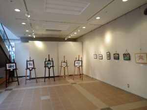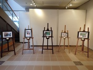 「サンアップル」のスタッフさんがたくさんイーゼルを用意してくださり、とてもかっこいい展示ができました!
