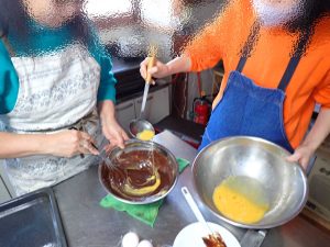 小麦粉も加えて混ぜて、オーブンでじっくりと焼きます