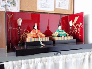 アトリエ虹の玄関にも、そして部屋の中にもお雛様やつるし雛を飾りました。